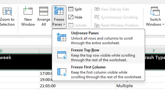 (Slide 70) Freeze the top row so that the titles of each column will not be lost (Select ‘View’ tab and ‘Freeze Top Row’).