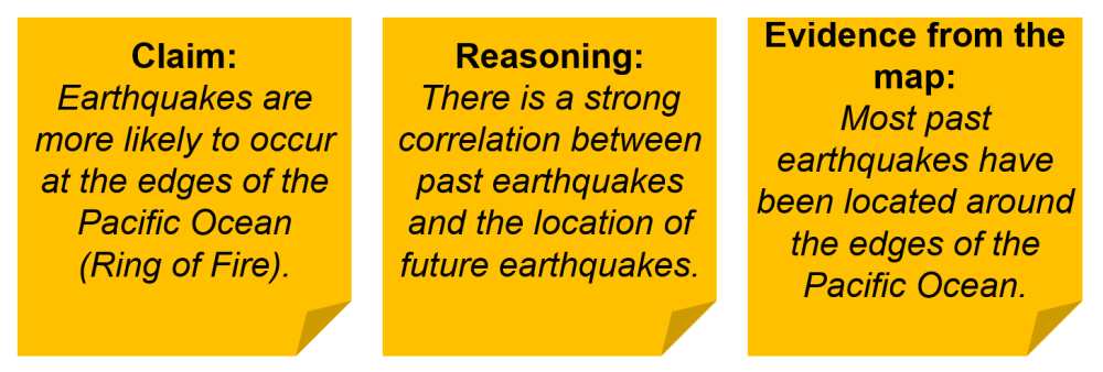 (Slide 7) Once students have made a claim, draw students’ attention to the Ring of Fire around the Pacific Ocean as a frequent location of earthquakes.